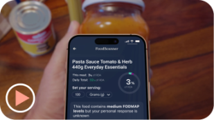 Erfasse deine Mahlzeiten schnell und einfach – scanne Barcodes, um FODMAP-Gehalt, RDA-Anteil und deine bisherigen Reaktionen zu sehen.